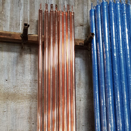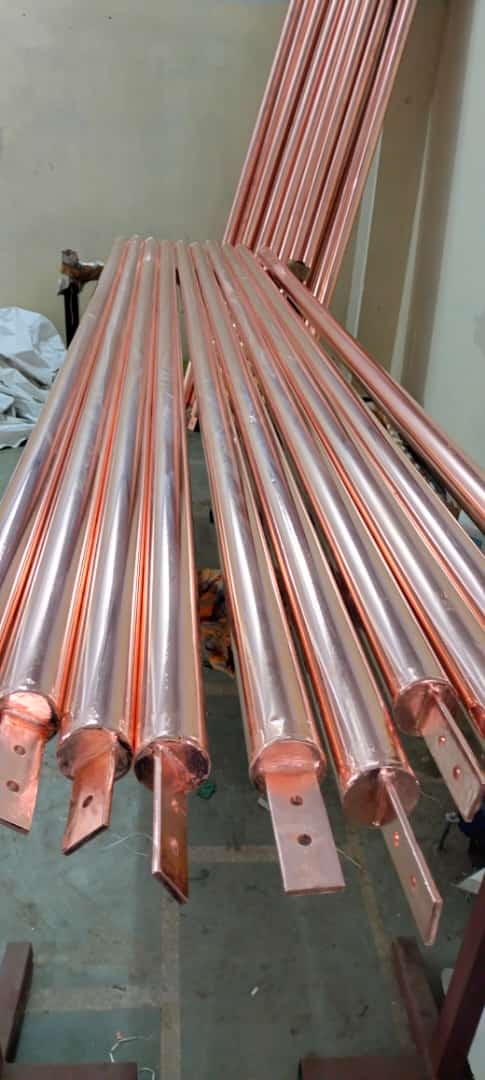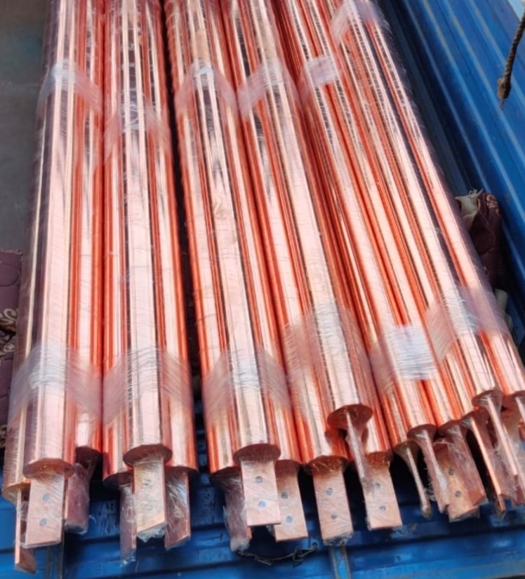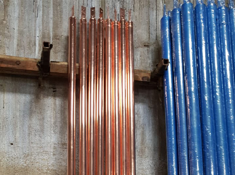 The Copper Layer is bonded to steel core through an electrolytic process that ensures a perfect and tough bonding between the steel and the copper. They are covered with copper to prevent exposure of the steel core to soil and moisture. It can resist corrosion better and has capacity of being driven to great depths.